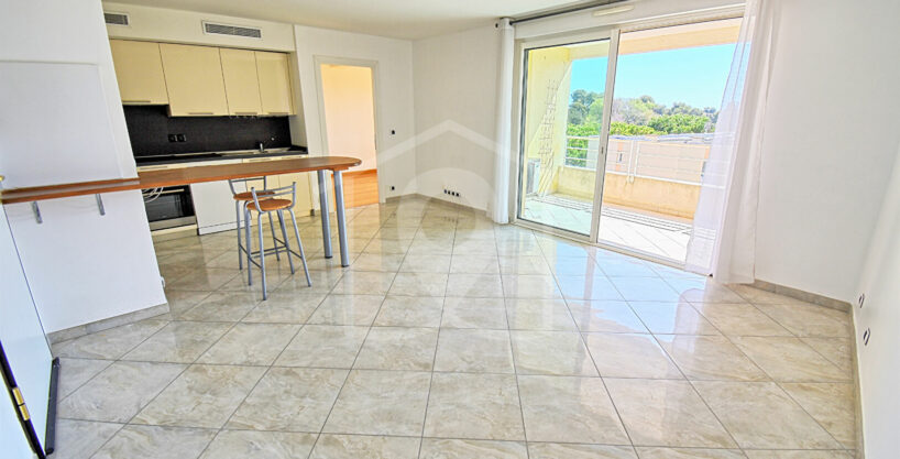 CROIX ROUGE : à proximité immédiate de tous les accès, du BusTram pour desservir Sophia Antipolis, et des commodités, dans un immeuble récent prochainement ravalé, votre Agent Exclusif vous présente ce lumineux 2p en avant dernier étage bénéficiant d’une agréable vue dégagée. Spacieuse pièce à vivre de plus de 25m² avec salon, cuisine ouverte et coin repas, qui ouvre sur une profonde loggia ensoleillée et qui bénéficie d’un aperçu mer latéral. La partie nuit est composée d’une vaste chambre de plus de 14m² avec bel espace de rangement et une salle d’eau avec toilettes. Entièrement climatisé, cet appartement est proposé à la vente avec une grande cave et un garage fermé en sous sol.