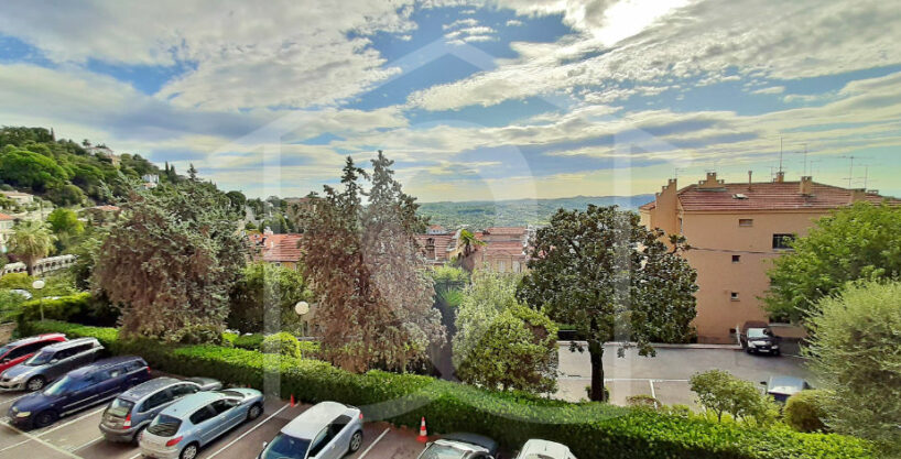 A proximité du centre historique tout en étant au calme et dominant, spacieux et lumineux appartement de 3P bénéficiant d’un large balcon et d’une vue panoramique sur la verdure jusqu’à la mer.