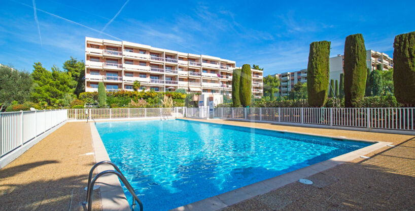 EXCLUSIVITE ANTIBES COMBES, magnifique 2P en étage élevé exposé SUD au calme absolu, résidence de bon standing vue dégagé sur verdure, piscine, tennis, gardien.