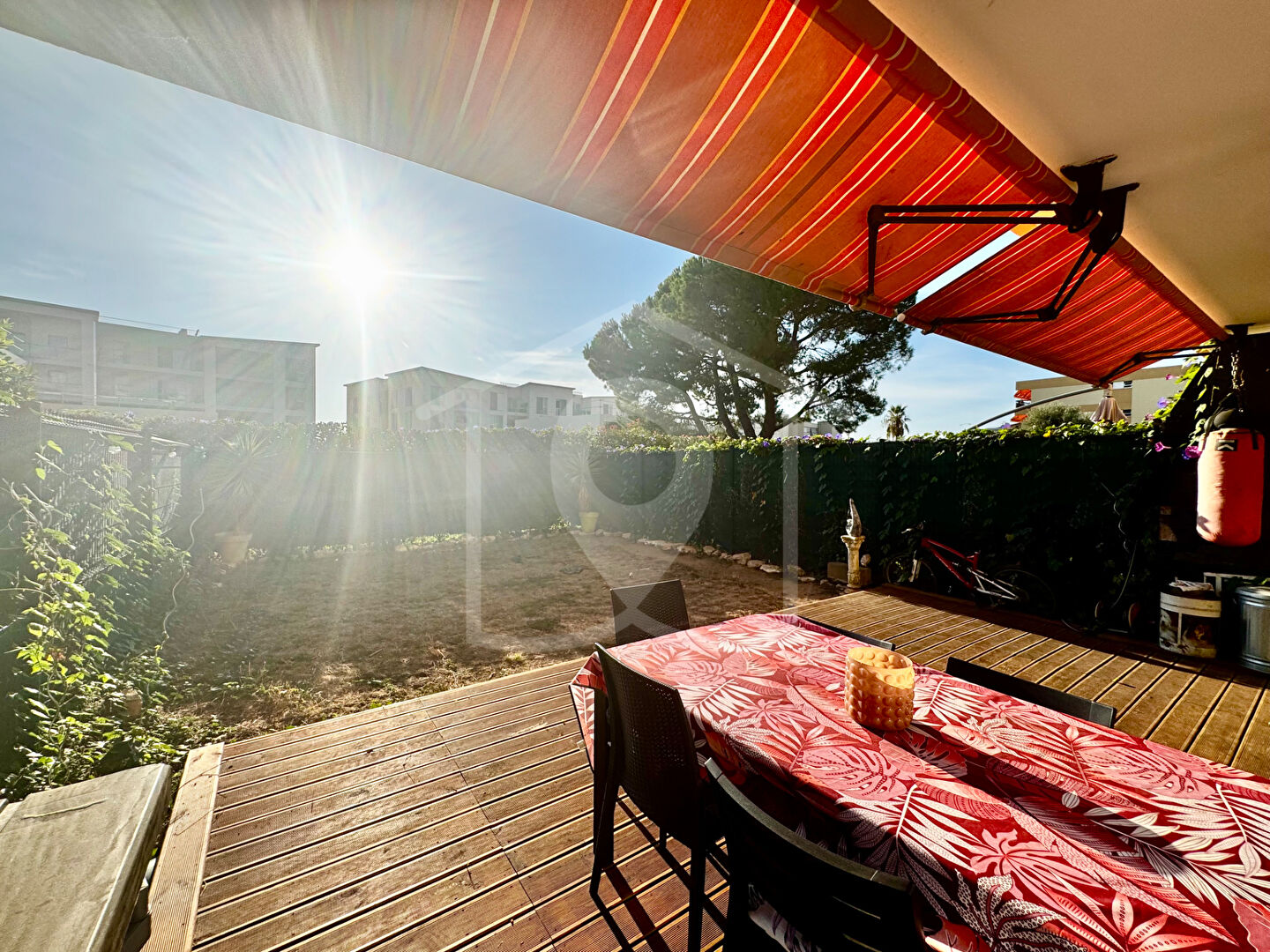 ANTIBES 3P REZ DE JARDIN ,résidence de standing avec piscine, découvrez ce superbe 3 pièces traversant d’environ 70 m², situé en rez-de-jardin, au calme absolu.