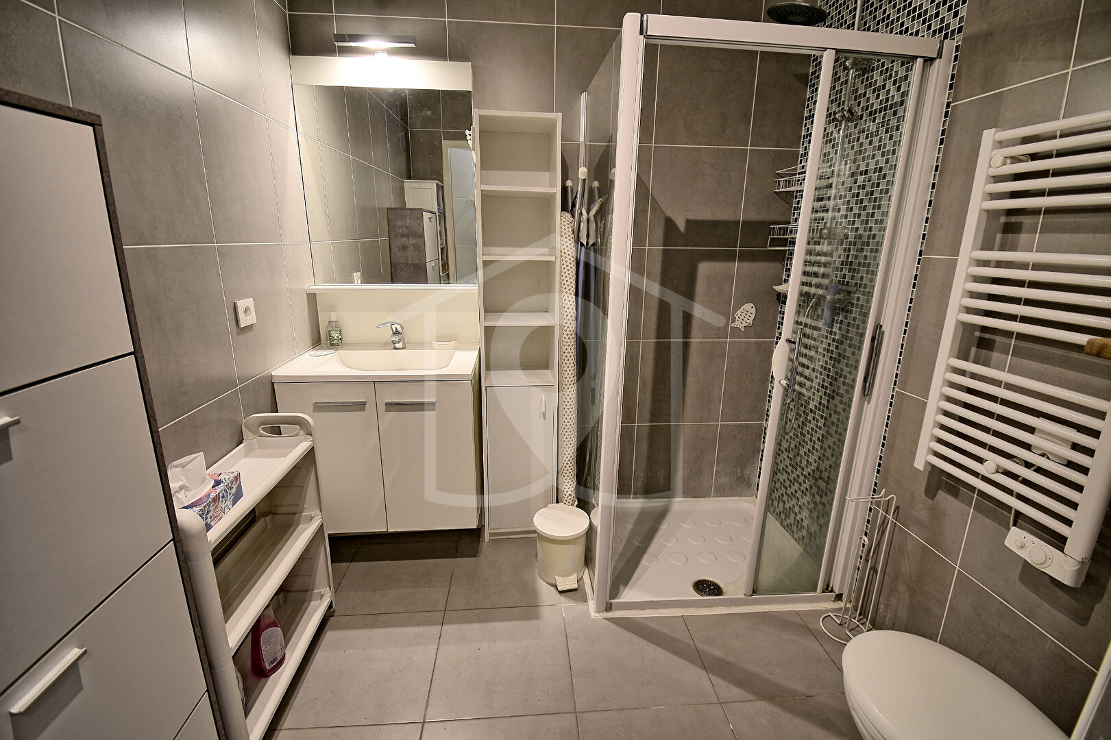 A l’intérieur, aucun travaux à prévoir : l’appartement est en parfait état et parfaitement équipé pour un confort immédiat ? climatisation réversible, double vitrage, volets roulants électriques, cuisine américaine entièrement équipée et fonctionnelle. La chambre dispose d’un grand placard, et la salle de bains attenante est avec WC.