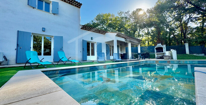 Montauroux. Belle maison 132 m² de 2012 discrètement jumelée d’un coté, au calme absolu sur une parcelle de 1000 m² .