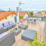 LE MAS DU TANIT : Dans un ensemble immobilier des années 70 avec jardins et piscine, à proximité immédiate des plages et du centre ville de Juan les pins, spacieux studio cabine bénéficiant d’une agréable vue dégagée sur les jardins et du calme. Au 1er étage avec ascenseur, l’appartement est composé d’une entrée, une salle de douche avec WC, une cabine avec lit double et espace de rangement, un séjour avec cuisine ouverte aménagée et équipée, prolongé d’une large terrasse. Actuellement loué en bail étudiant, l’ensemble est en bon état de présentation, vendu meublé et équipé, idéal pour de la location saisonnière !