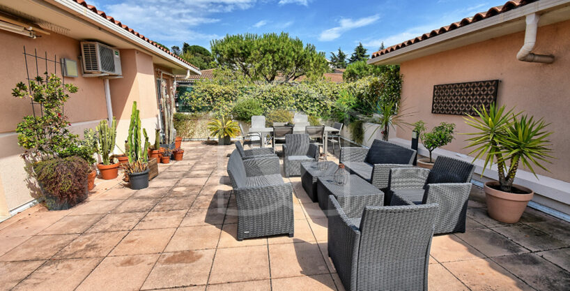 Cet appartement d’une superficie d’environ 85m2 vous offre un espace de vie s’ouvrant sur la terrasse d’environ 90m2. La cuisine est aménagée et restera équipée.